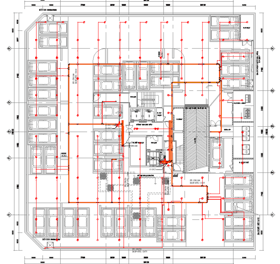 Mặt bằng hệ thống PCCC tầng hầm