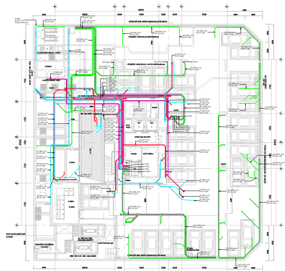 Mặt bằng hệ thống cấp thoát nước tầng hầm