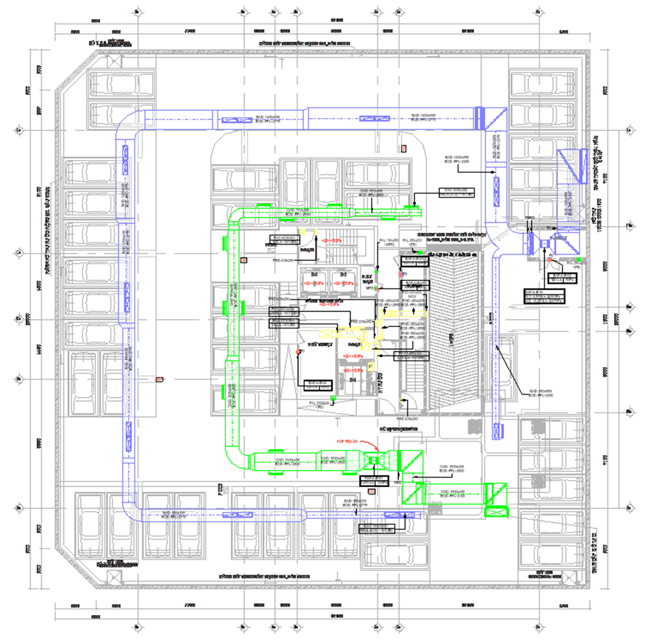 Mặt bằng hệ thống HVAC tầng hầm