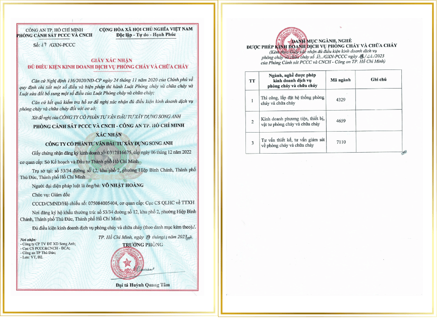 Giấy xác nhận đủ điều kiện kinh doanh dịch vụ phòng cháy và chữa cháy