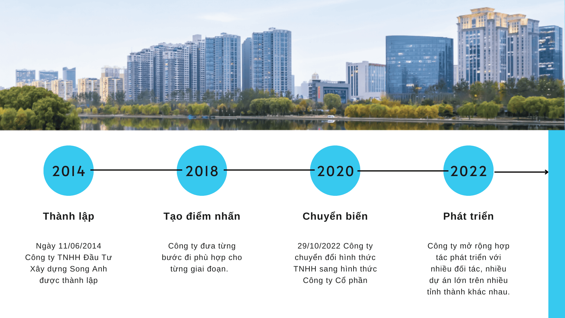 Ngay từ khi thành lập năm 2014, Song Anh đã có được cơ hội hợp tác với các đối tác với nhiều dự án qui mô lớn nhỏ tại các tỉnh thành. SA không ngừng nỗ lực, nâng cao năng lực chuyên môn và khả năng quản lý và ngày càng nhận được sự tín nhiệm của nhiều khách hàng đối tác.
